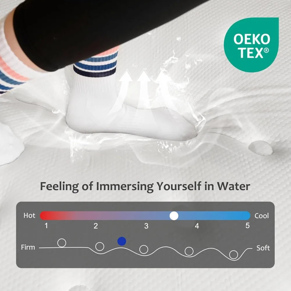 - luxury queen mattress uses advanced Ice Silk fabric that is cool and silky to the touch. Let you experience a cool, sweat-free sleep. The advanced and comfortable fabric will keep the surface like new for many years, and you can feel the comfort of the fabric even if you sleep without a sheet. In terms of safety, our mattress is certified by CertiPUR US and OEKO-TEX, and does not contain harmful substances and fiberglass. Let you and your family sleep with peace of mind.