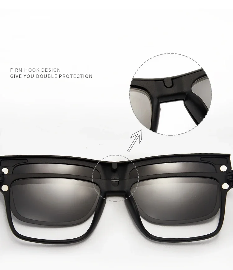 • Magnetic Clip :Allows for easy and secure attachment to sunglasses frames, preventing the clip from slipping off.