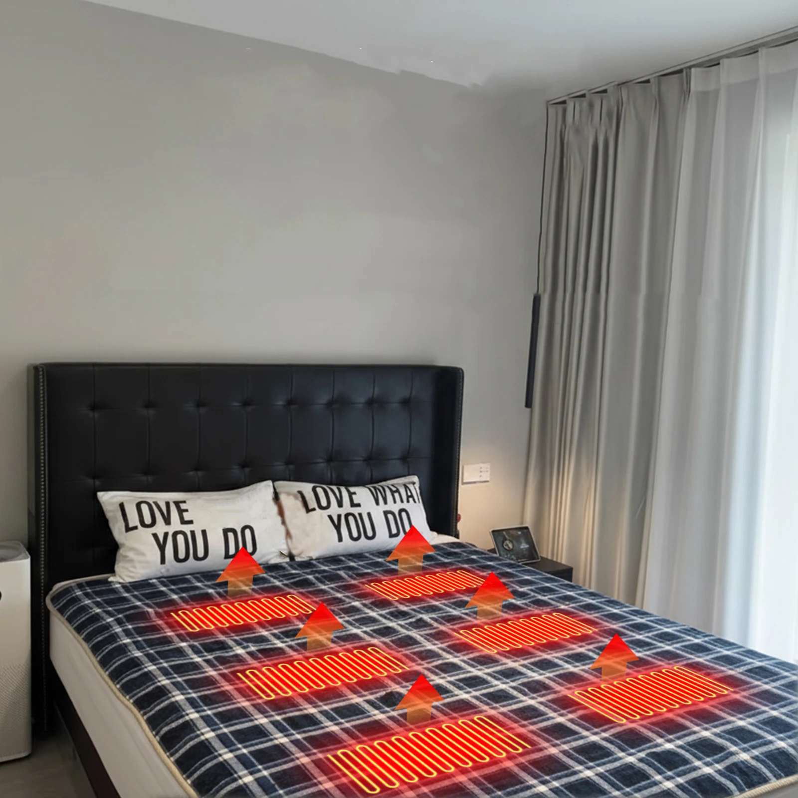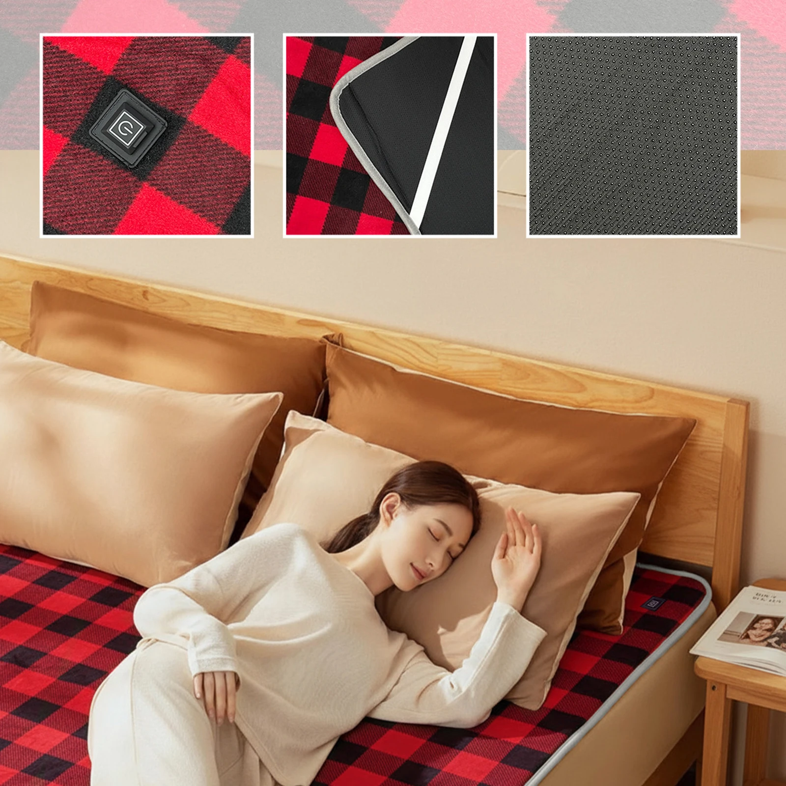Features: 1.Intelligent 6-Zone Heating: Experience consistent warmth in any environment with our camping usb heating sleeping mat. The advanced multi-zone system ensures even heat distribution for whole-body comfort when camping, hiking, or resting outdoors. 2.Dual USB/Type-C Power Options: Choose your preferred connection to power this outdoor electric heating pads simply link to a 5V2A portable charger for optimal performance, offering flexibility and convenience during your adventures. 3.Graphene Heating Material: Our portable usb heated sleeping bag pad utilizes cutting-edge graphene heating technology, providing efficient, long-lasting heat that keeps you cozy and protected on cold nights in nature. 4.Skin-Friendly & Waterproof Fabric: Designed for the outdoors, our camping heating sleeping pad features a soft, scratch-resistant, waterproof surface and a non-slip base, ideal for tents, vehicles, or at home. 5.Easy Wash & Maintenance: Clean-up is hassle-free, this waterproof electric warm sleeping mat supports both hand washing and machine washing, so you can keep it fresh and ready for every outing. Specification: Materials: Polar fleece + synthetic fiber + drop-in non-slip fabric + graphene Colors: Plaid red, plaid blue, gray sIZE: Unfolded: 180cm/70.87in * 150cm/59.06in, collapsed: 35cm/13.87in * 15cm/5.91in Heating zones: 6 Temperature: Low: 40°C (±5°C), Medium: 50°C (±5°C), High: 60°C (±5°C) Power supply: USB/Type-C (requires your own 5V/2A power bank) Battery life: Using a 10W 20000mAh power bank as an example, the low setting provides continuous heating for 12 hours, the medium setting for 10 hours, and the high setting for approximately 8 hours. (Battery life may vary due to power bank brand, power consumption, and external environmental factors. For reference only!)