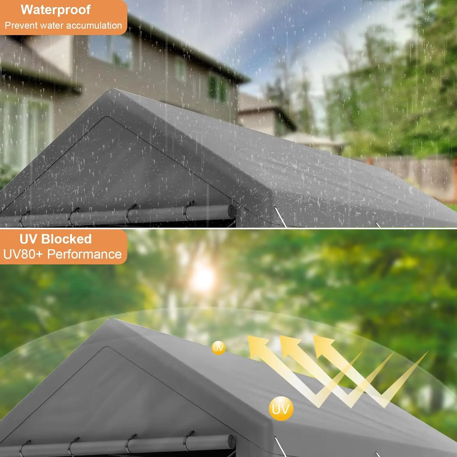 Carport 10x20 Ft Heavy Duty Canopy Steel Canopy Storage Shed,Portable Garage Party Tent, All-Season Tarp for Carport (Grey)