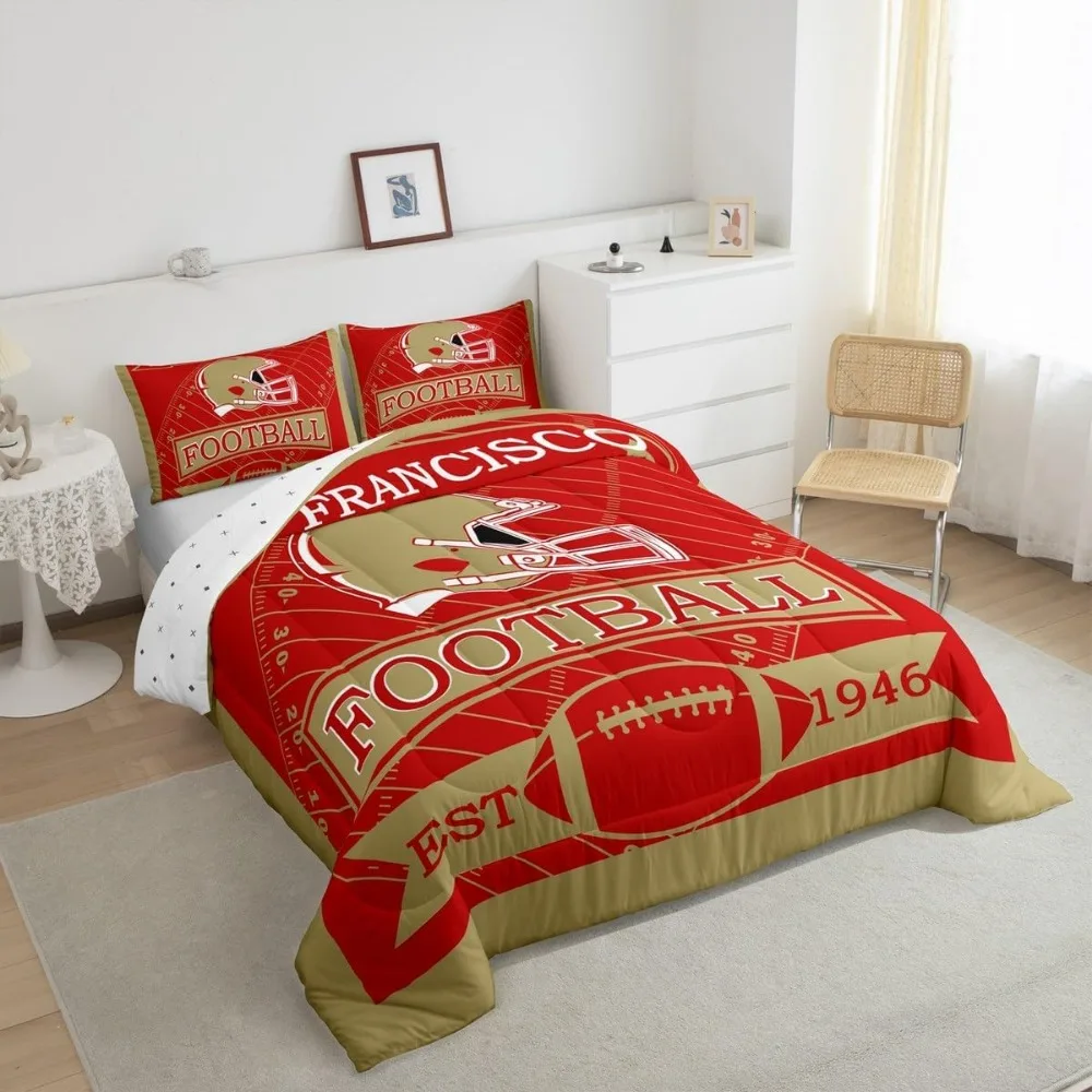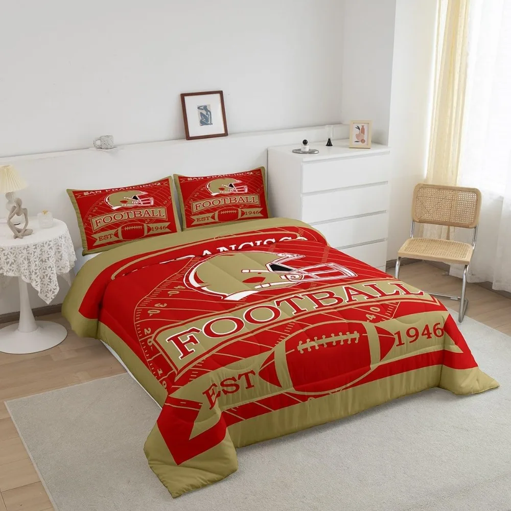 Feelyou Kids Boys American Football San Francisco Bedding Set Queen Size,Football Comforter Set,Boys Girls Bedroom Room Decor,Sp
