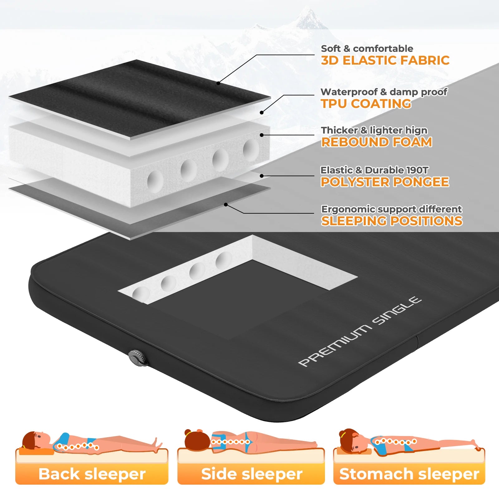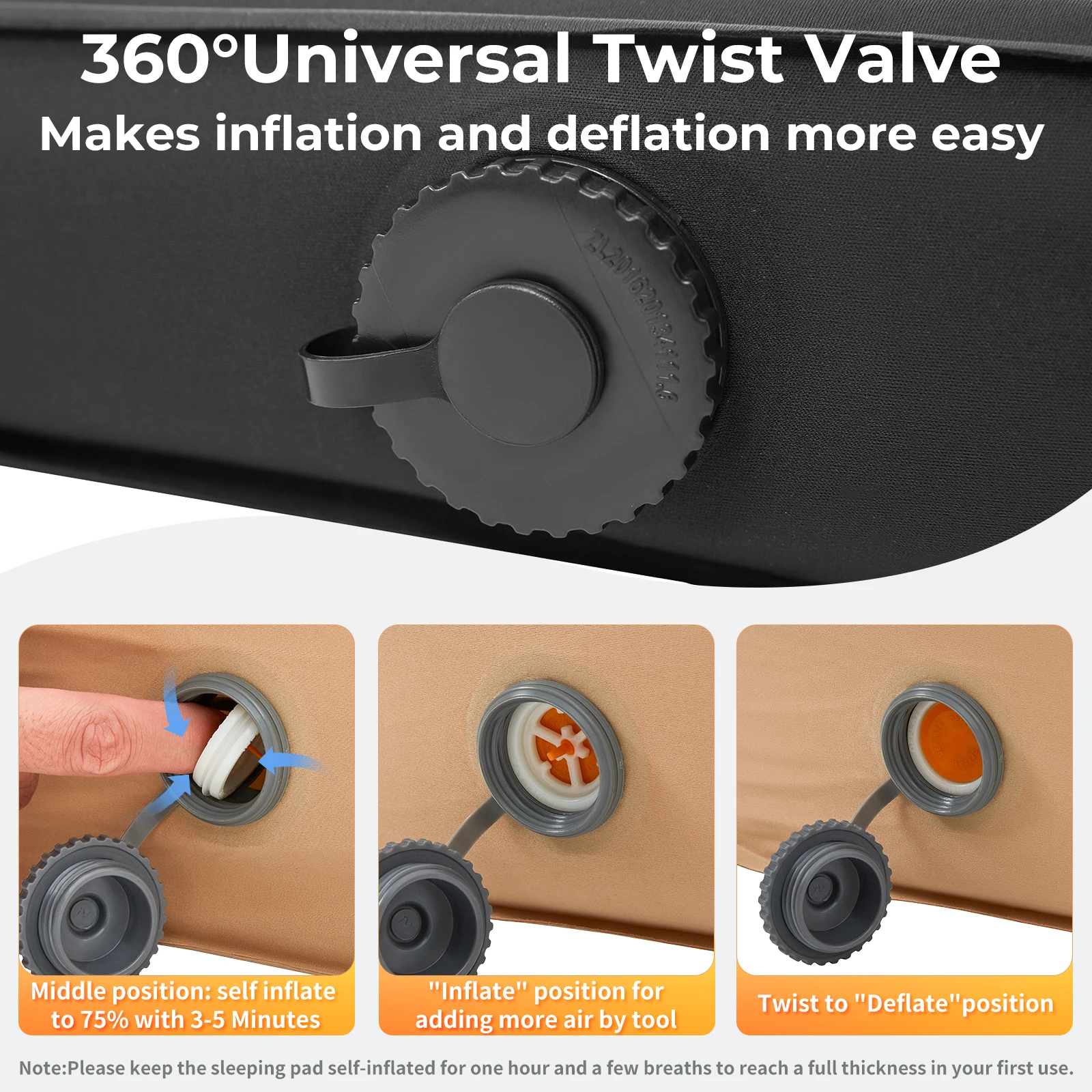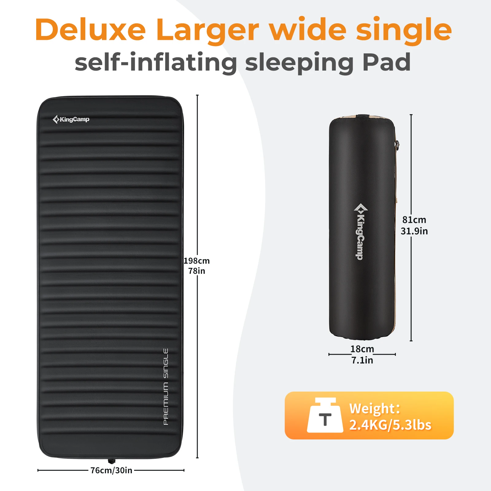 KingCamp Self Inflating Sleeping Pad, R 7.9 Air & Foam Sleeping Pad for Camping All Seasons, 3" Thick Single Camping Mattress fo