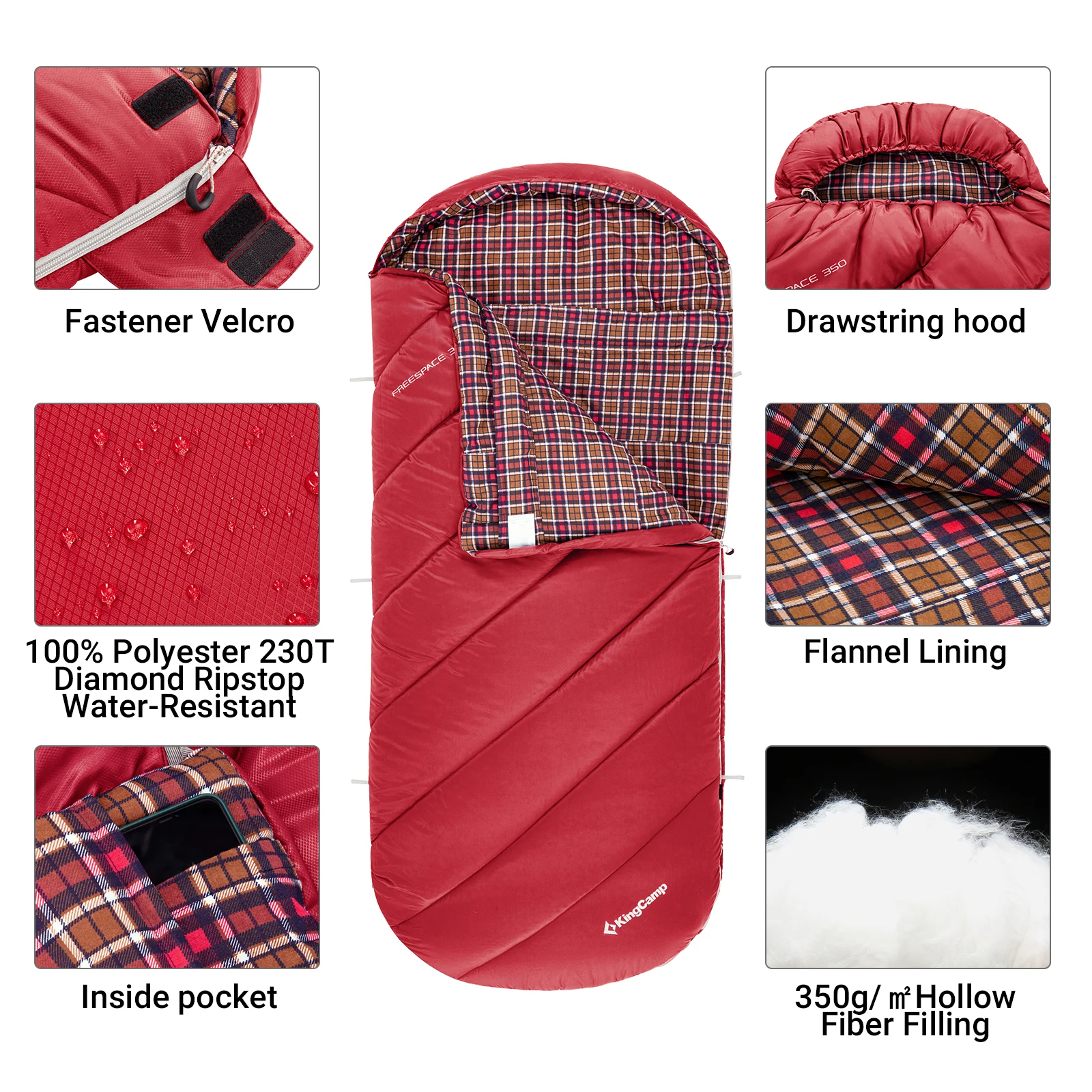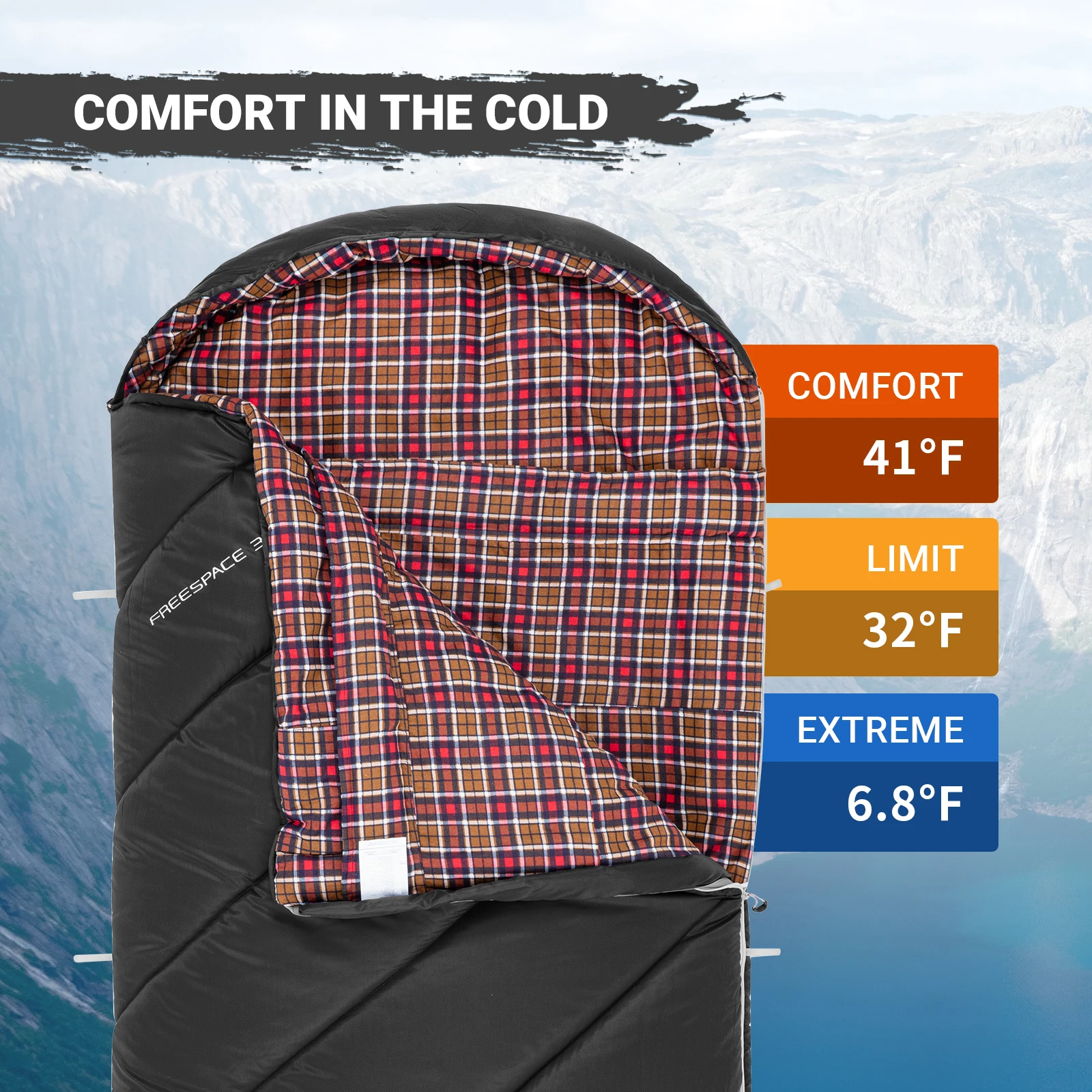 KingCamp Sleeping Bag for Adults, Cold Weather & Warm Extra Wide Big & Tall XL Portable Waterproof Flannel Sleeping Bags, Essent