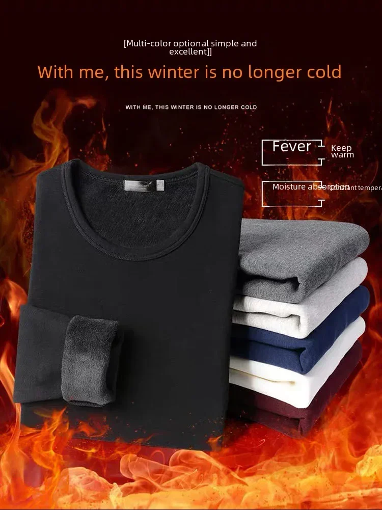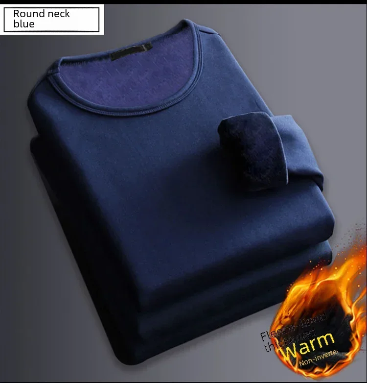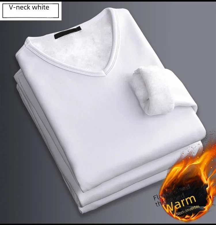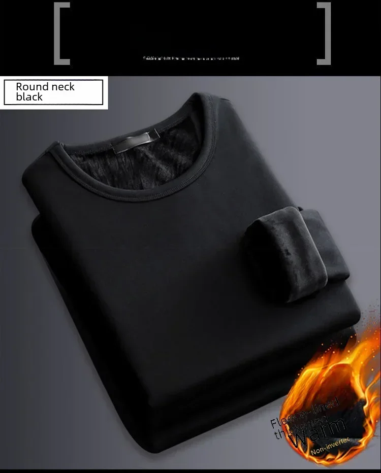 Men's Winter Thermal Underwear Tops Fleece-lined Thickened Warm Sweatshirt Solid Color O-neck V-neck Base Shirt Large Size 5XL