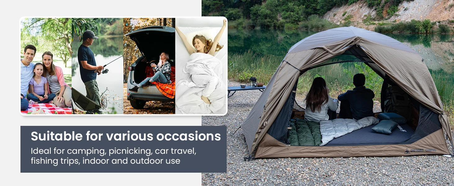 | IDEAL FOR: Camping, picnicking, trekking, hiking, fishing trips, indoor and outdoor use, and comes with a 3M patch repairing kit