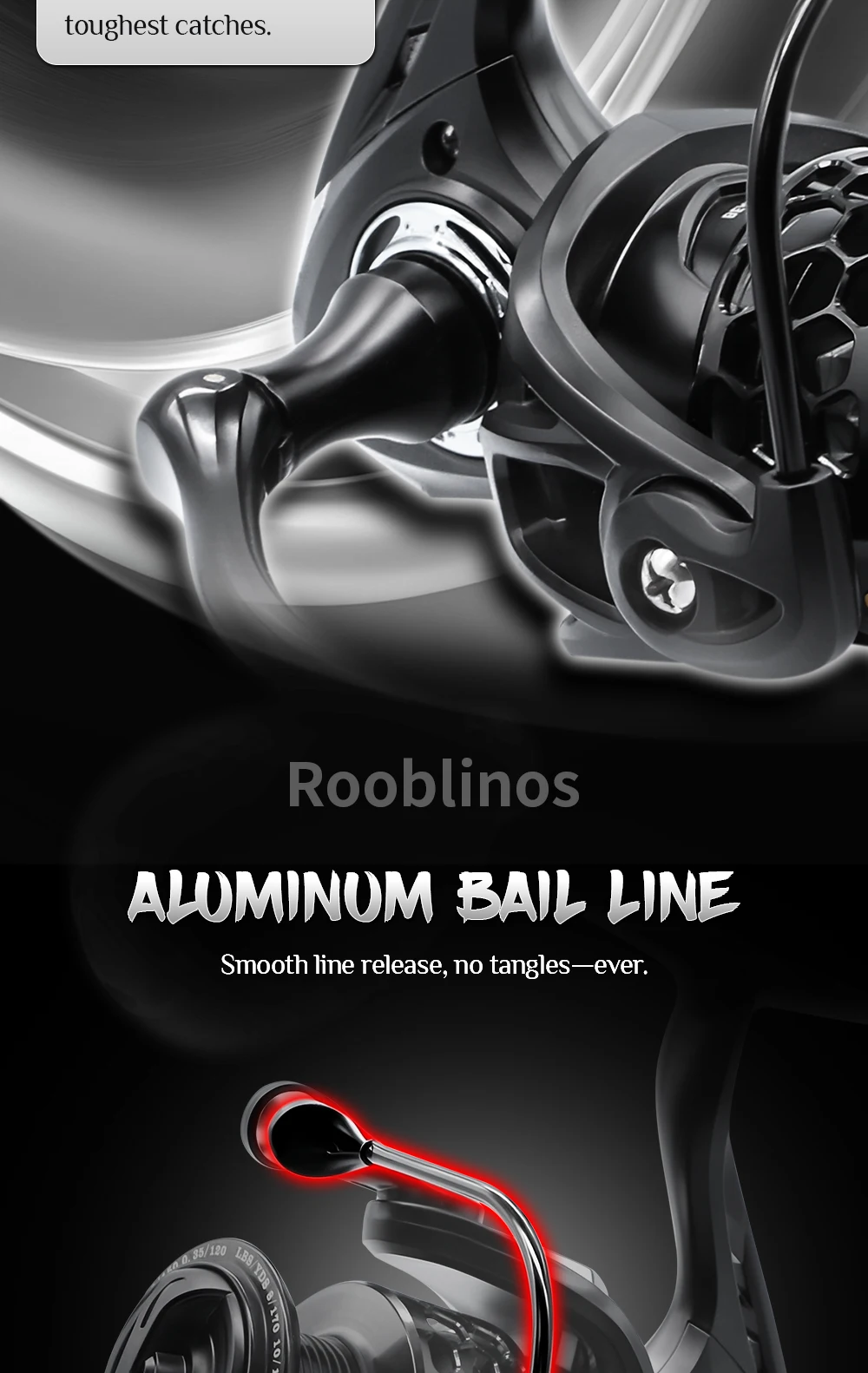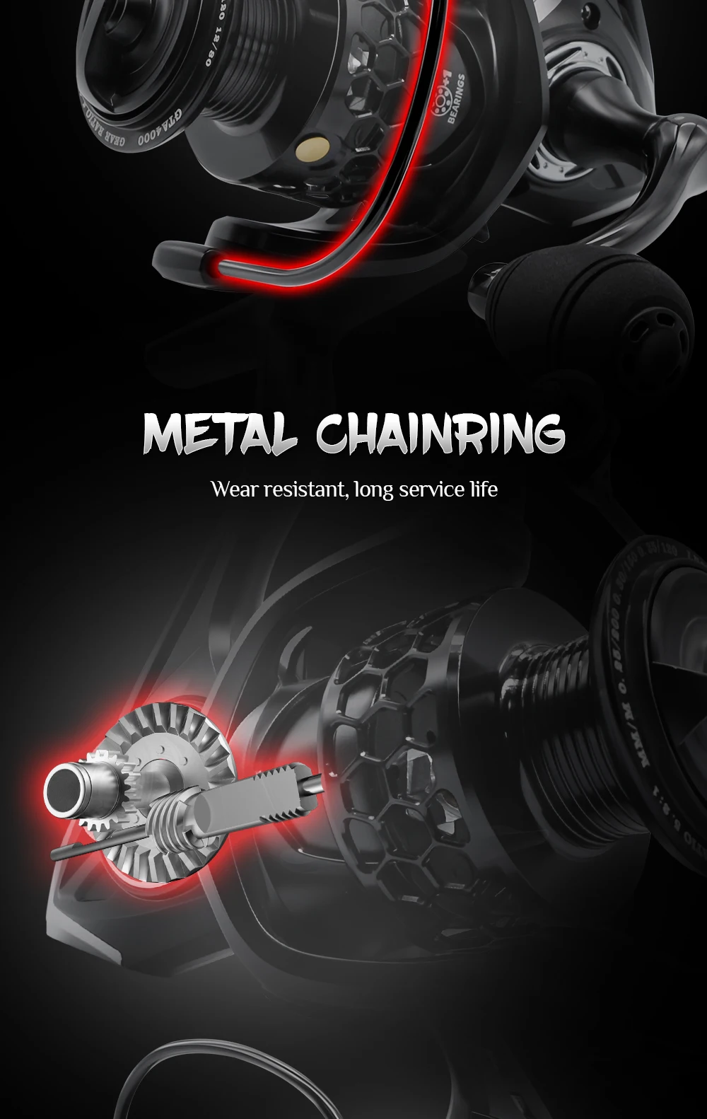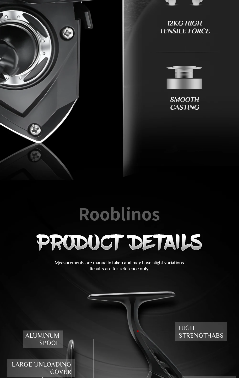 ROOBLINOS GTA2 Spinning Reel - 5+1 Bearings, 5.2:1 Gear Ratio, 15LB Drag Force, Metal Body with Anti-Reverse System