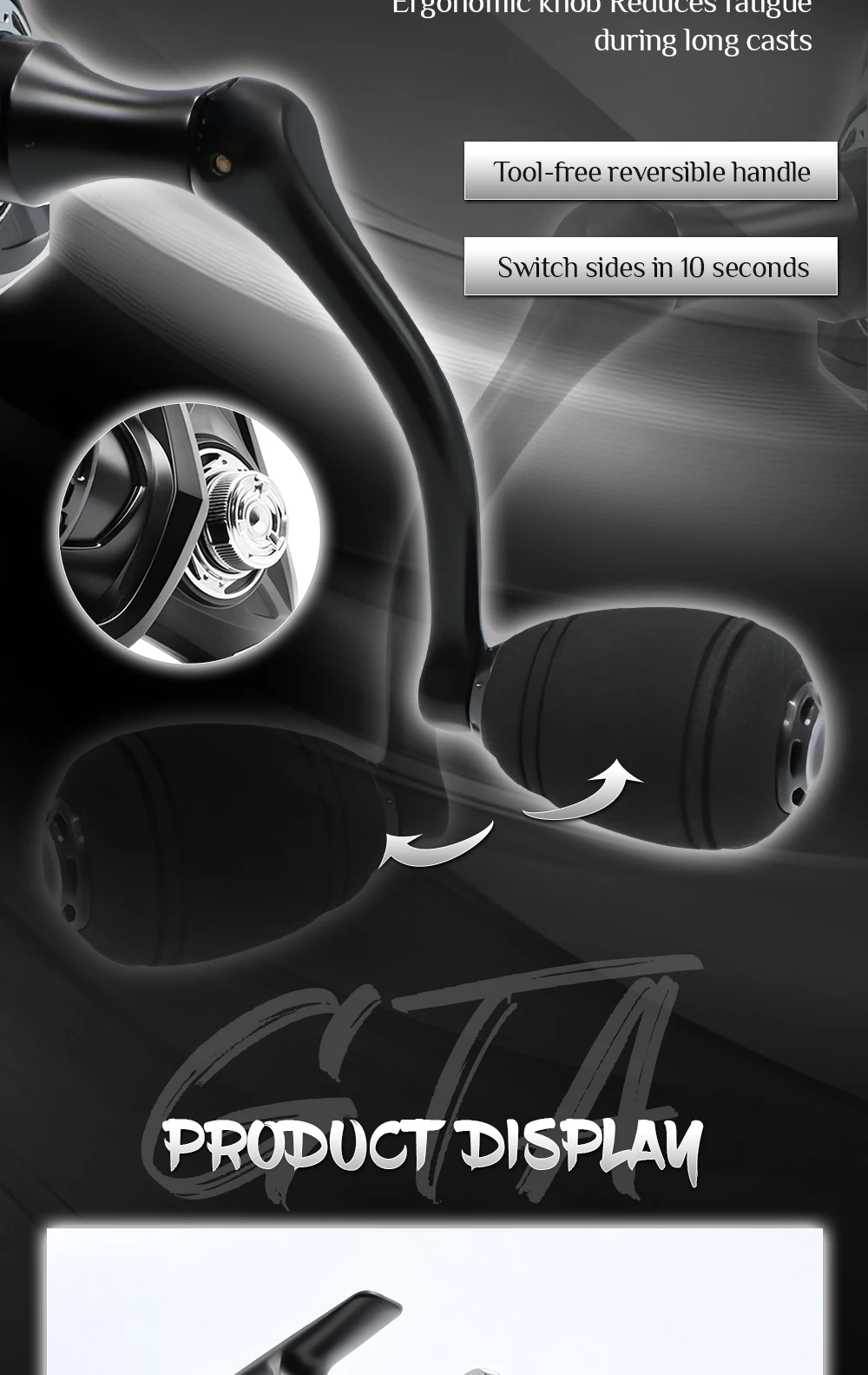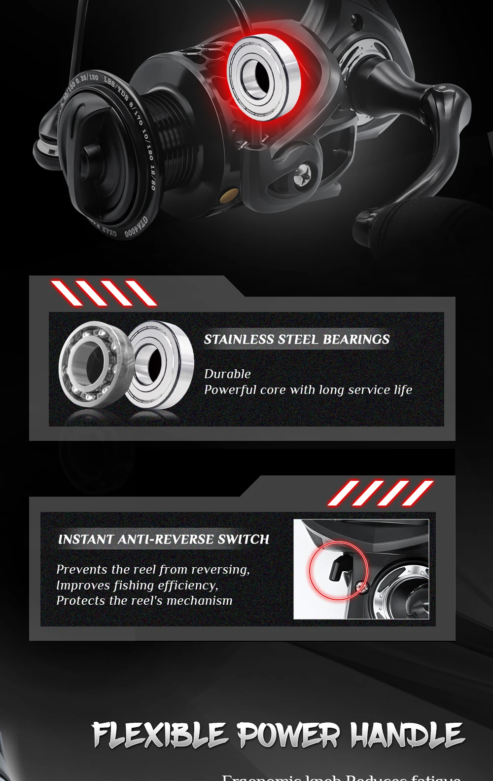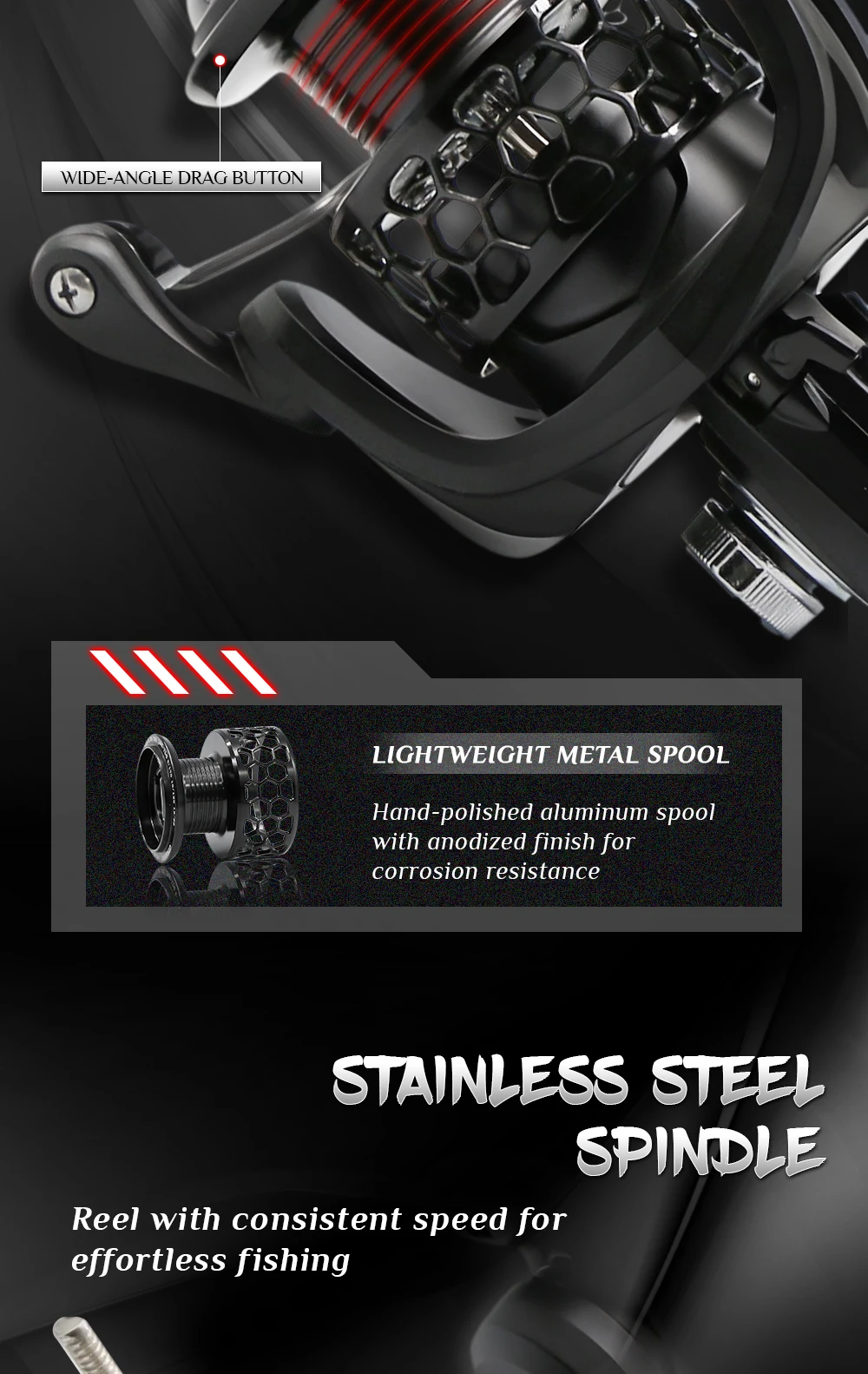 ROOBLINOS GTA2 Spinning Reel - 5+1 Bearings, 5.2:1 Gear Ratio, 15LB Drag Force, Metal Body with Anti-Reverse System
