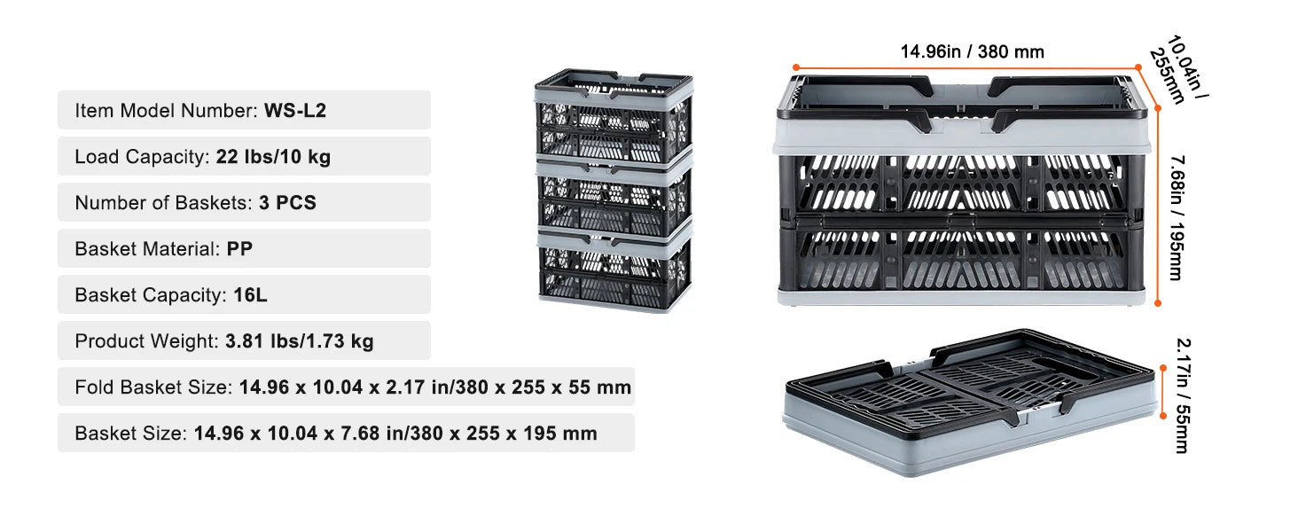 Basket Size: 17.72 x 12.40 x 9.45 in/450 x 315 x 240 m