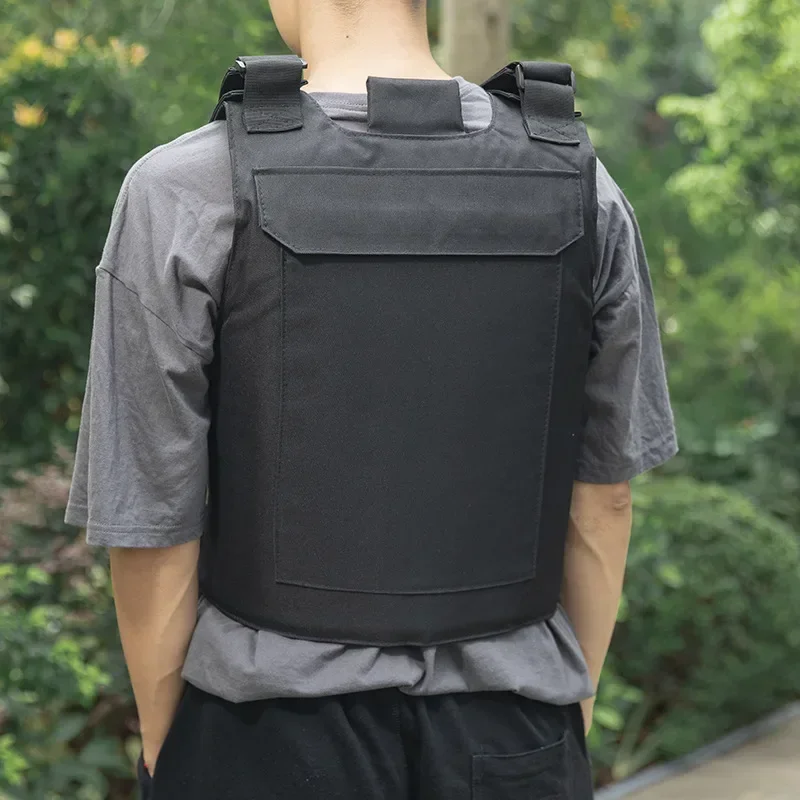 Removable dummy foam filled body armor plate on front and back.