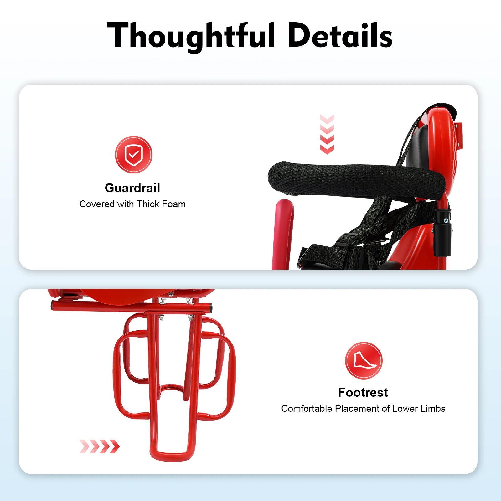 Wider Footrest: It is designed with two wide footrests so that the child's feet can rest comfortably on it without slipping off. It also prevents the child's feet from being scratched by the wheels, offering greater peace of mind.