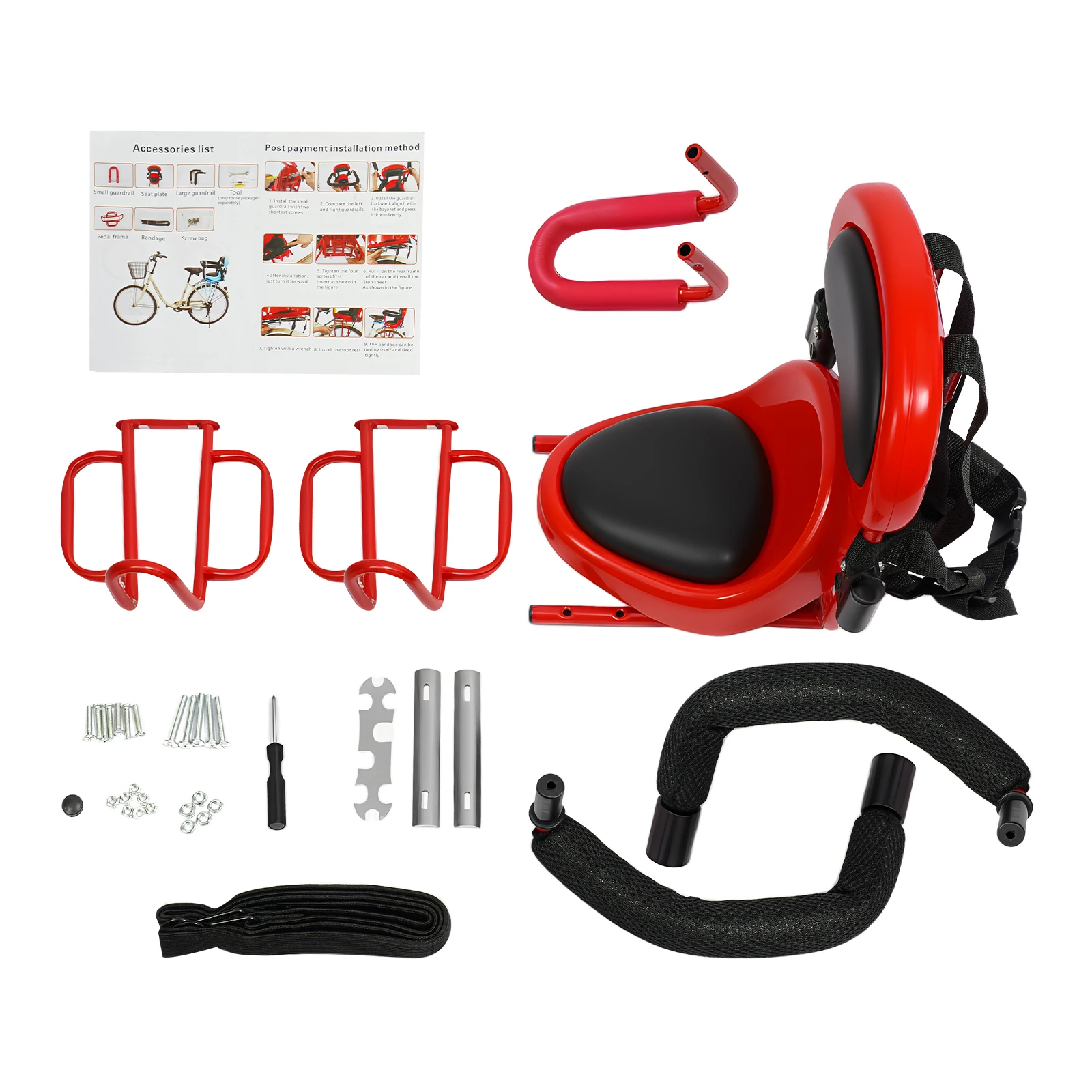 Comfortable to Use: This rear child bike seat is equipped with a wider seat and backrest with a thick foam lining that is soft and breathable, making it more comfortable for the child to sit on. The guardrail armrest and footrests provide a more comfortable riding experience.