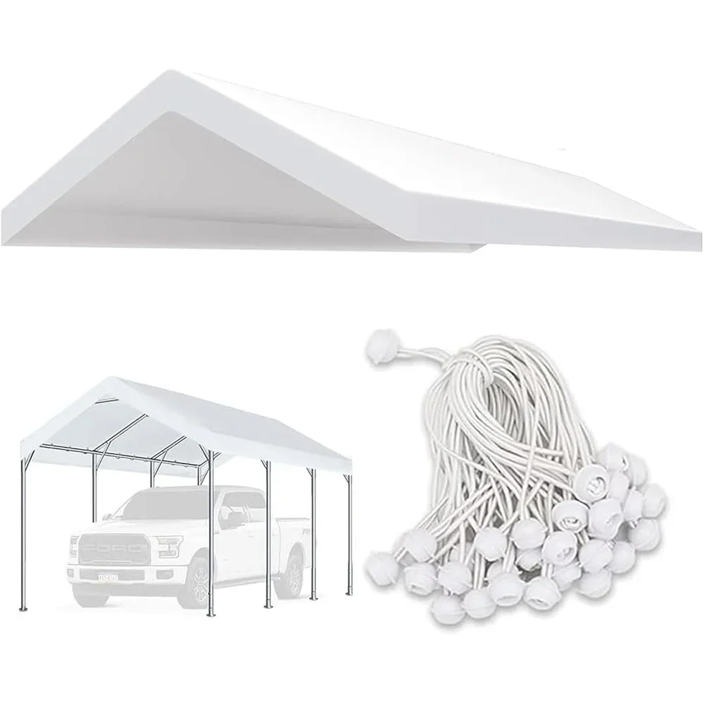 Upgraded Carport Replacement Canopy Cover Tent Garage Shelter Heavy-Duty Waterproof UV-Resistant Top Tarp with Bungee Cords