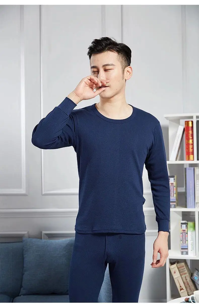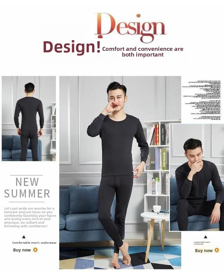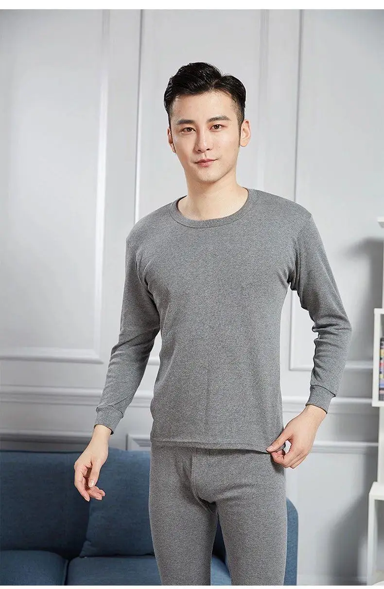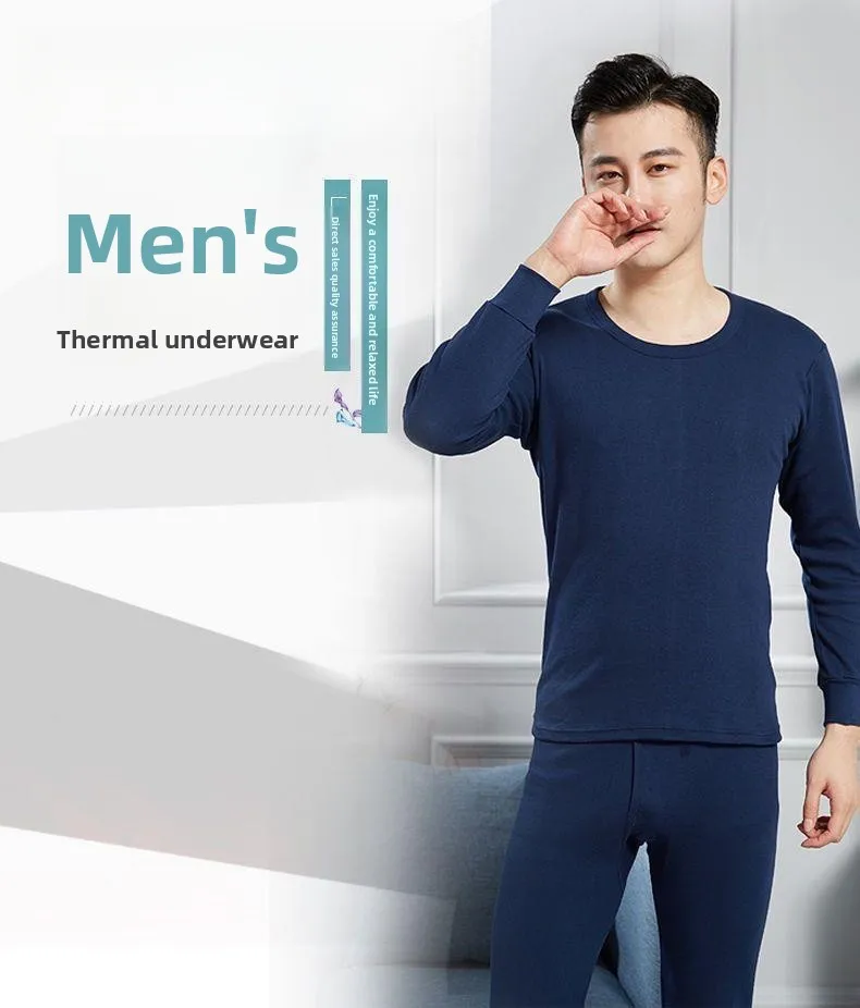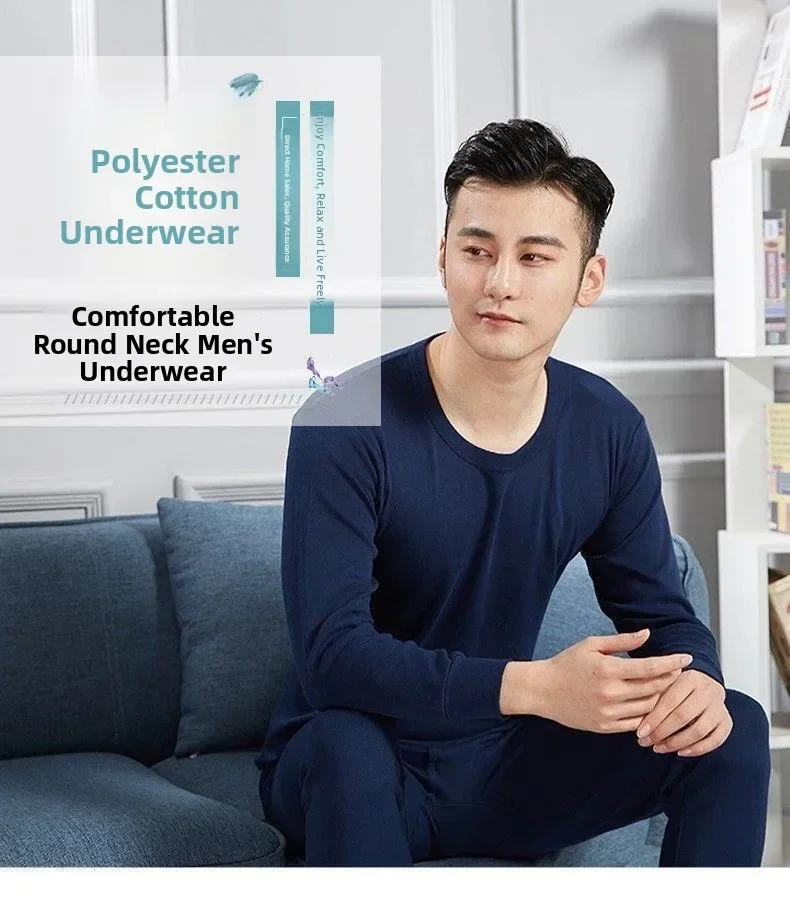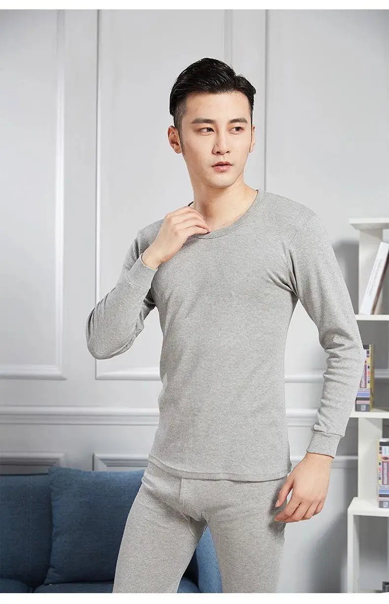 Warm Thin Fleece Underwear Set for Young Men Breathable Moisture Wicking Thermal Base Layer Clothing Long Sleeve Crew Neck