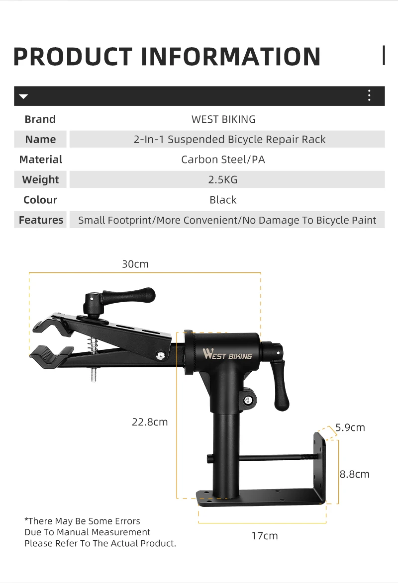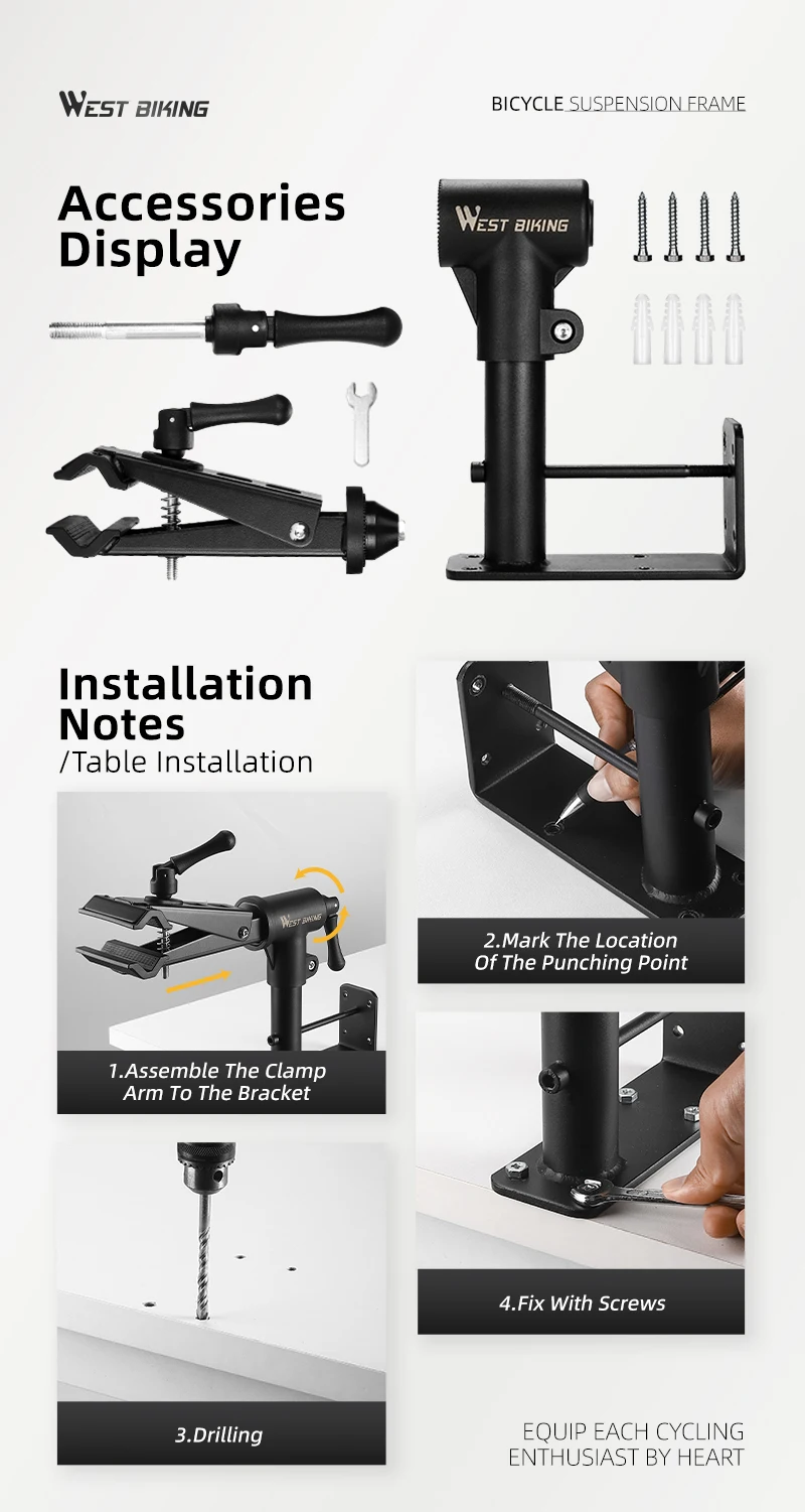 WEST BIKING Bicycle Repair Stand Wall/Table Mount Bike Parking Racks Maintenance Support Adjustable Clamp Bike Display Storage
